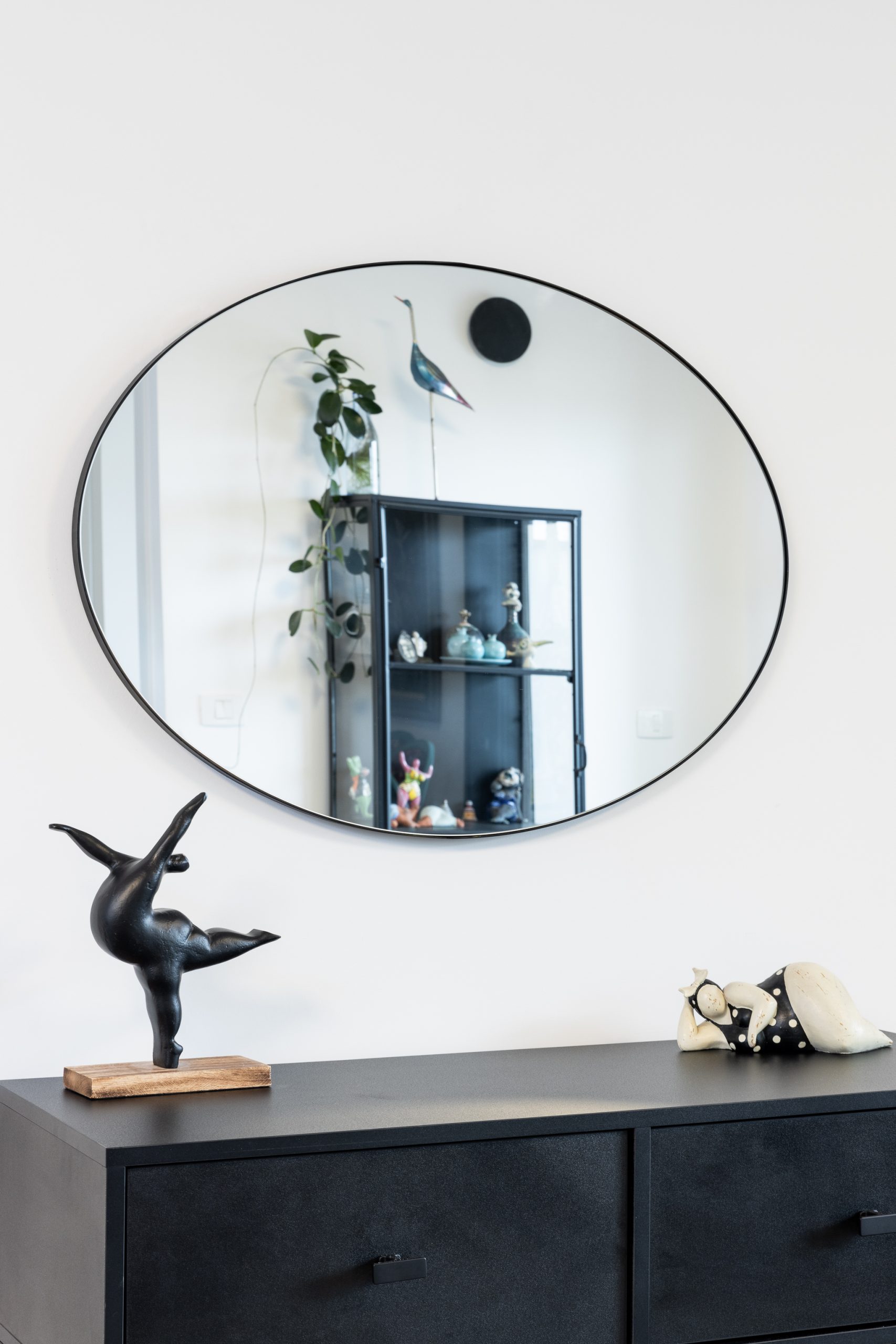 המסגרת הדקה בגוון שחור מדגישה את הצורה המיוחדת ויוצרת תחושת גובה ופתיחות, מושלם לכל חדר שדורש טאץ' של עיצוב.