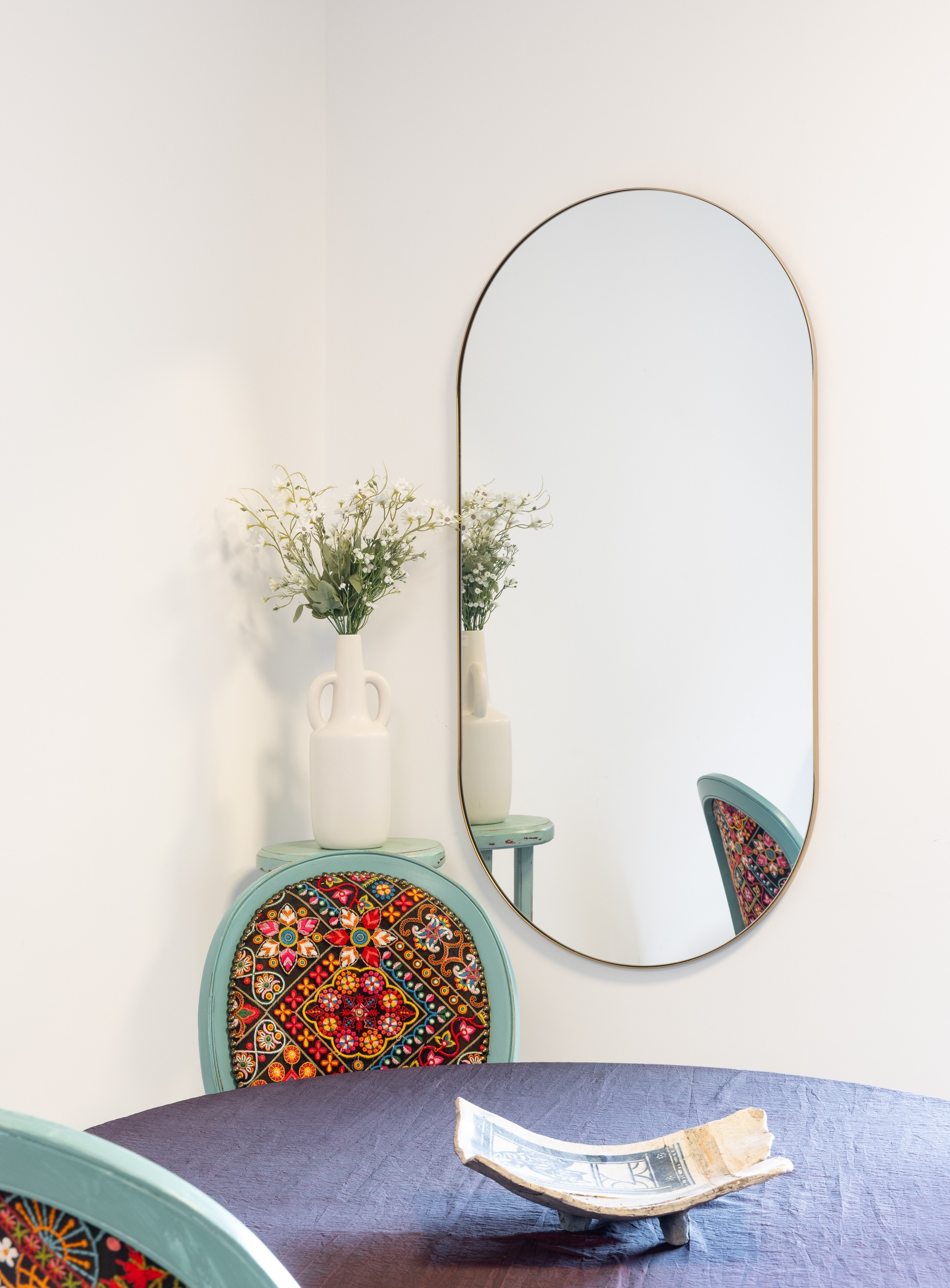 מראה קפסולה בעיצוב מודרני עם מסגרת דקה