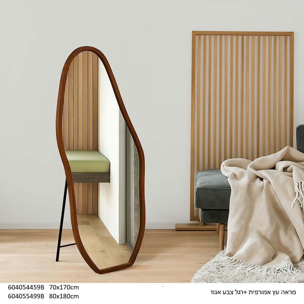 מראת עץ אמורפית עם רגל בצבע אגוז