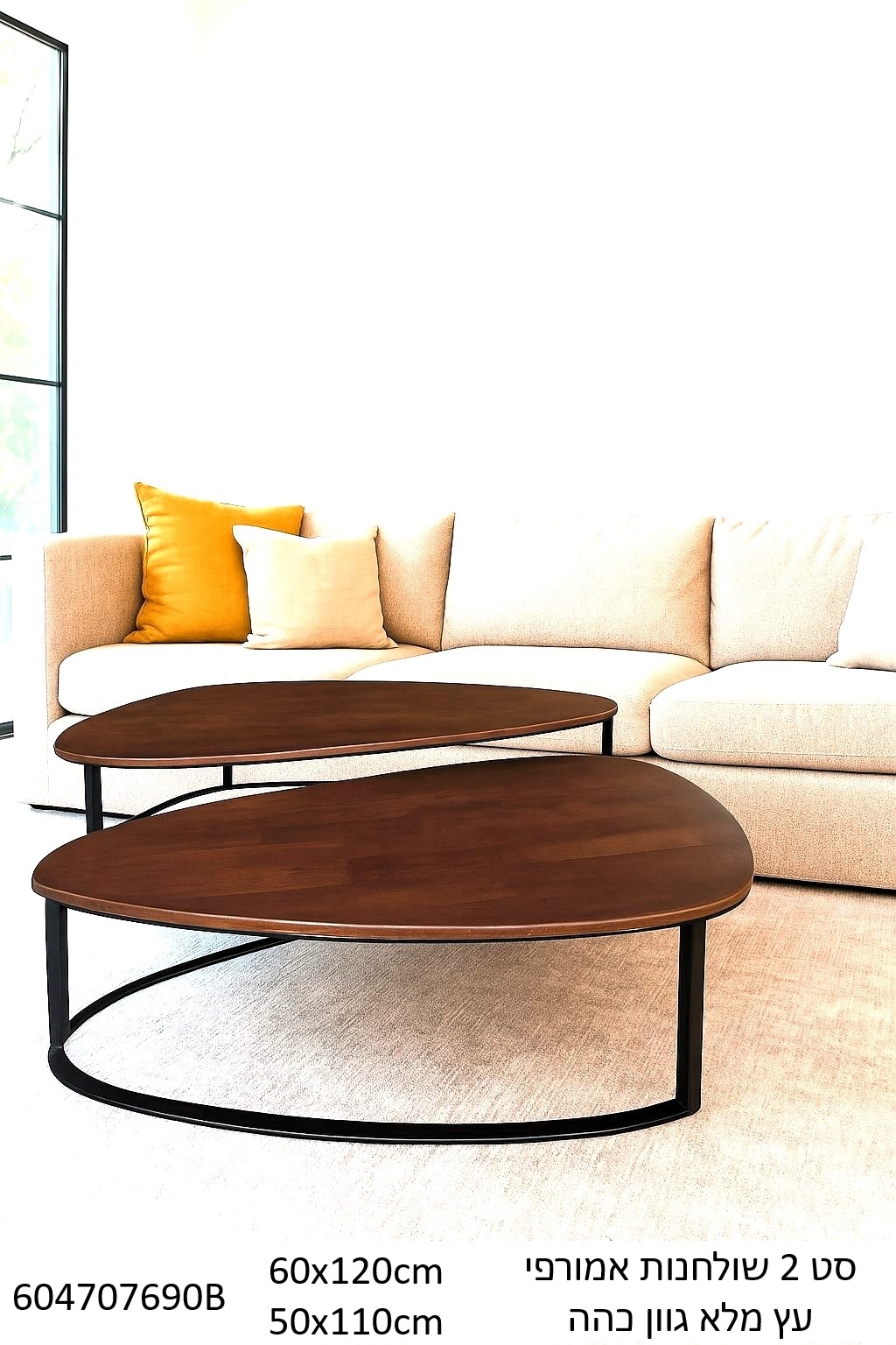 סט 2 שולחנות סלון אמורפי מעץ מלא בגוון כהה
