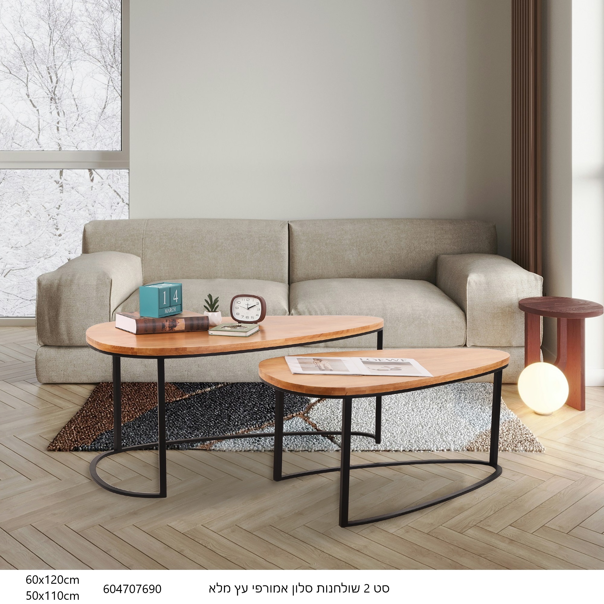 סט 2 שולחנות סלון אמורפי מעץ מלא