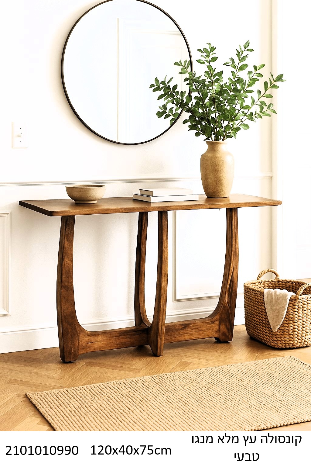 קונסולה מעץ מנגו מלא בגוון טבעי – עיצוב אמנותי עם נוכחות מרשימה