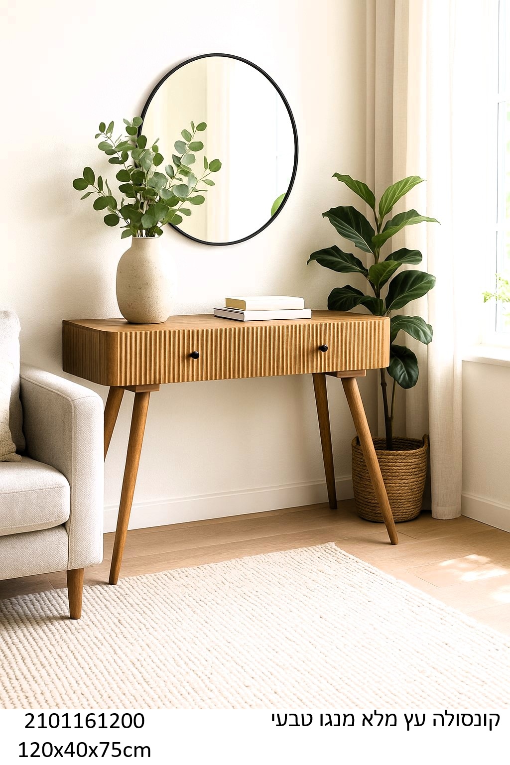 הכניסו לביתכם נגיעה של חום וסטייל עם הקונסולה המיוחדת הזו, עשויה כולה מעץ מנגו מלא בגוון טבעי. העיצוב האלגנטי שלה עם חריצים עדינים במגירות מעניק לה מראה ייחודי ומודרני, שמתאים לכל חלל – מהכניסה לבית, דרך הסלון ועד חדר השינה.