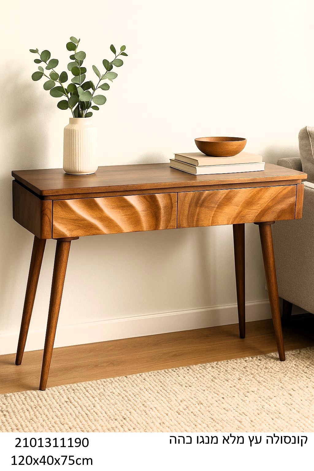 קונסולה מעץ מנגו מלא – עיצוב אלגנטי ונגיעה חמימה